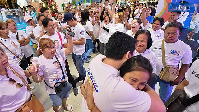 A candidate vying for a local seat in Manila is surrounded by supporters cheering for him as he proceeds to the Comelec's certificate of candidacy filing venue in SM City Manila on Saturday, 5 October 2024. Photos by KING RODRIGUEZ