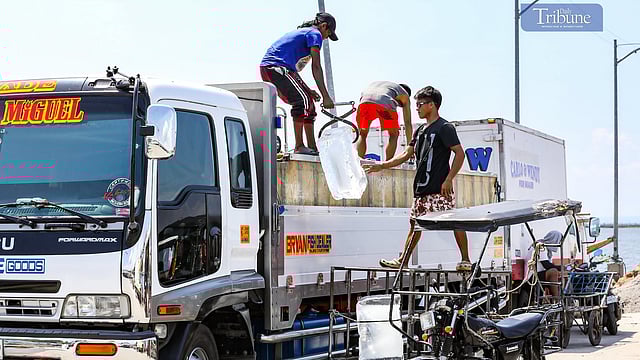 A deliveryman loads ice blocks into a truck at Binangonan Fishport in Rizal on Friday.