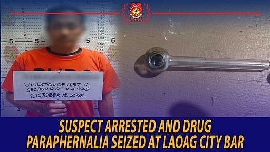 Laoag City, Ilocos Norte — Police here arrested a tricycle driver in the early hours of 13 October 2024, after being found in possession of drug paraphernalia inside a bar in Laoag City.