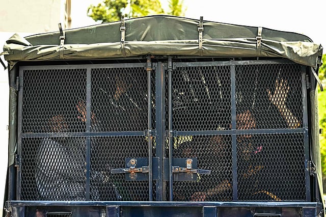 The accused — 13 men and nine women — were brought to the court under tight police security and chained together, Agence France-Presse reporters saw.