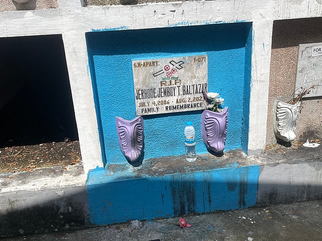 Jemboy Baltazar, another teenager mistakenly killed by the Navotas City Police, is also buried in La Loma Cemetery.