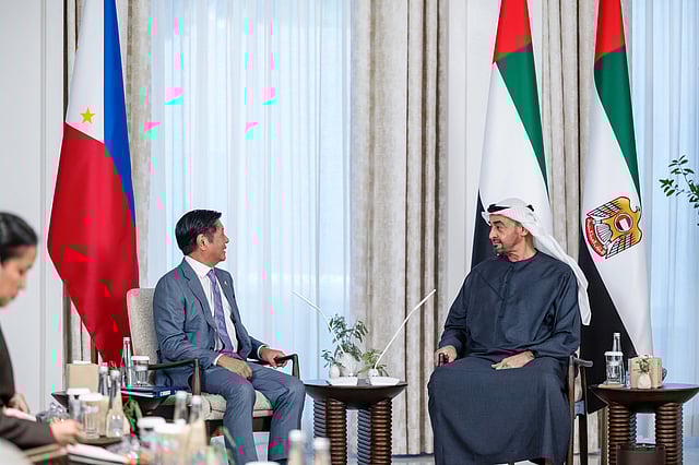 “Today I welcomed President Ferdinand Marcos Jr. to Abu Dhabi to discuss opportunities to further deepen cooperation between the UAE and the Philippines across vital fields, including economy, trade, and sustainability,” Sheikh Mohamed wrote on X (formerly Twitter).