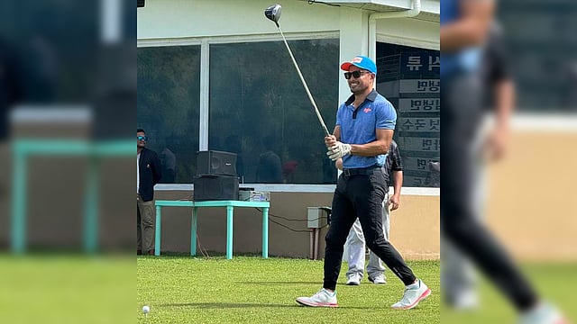 Celebrity Derek Ramsay hit the ceremonial ball and went on to shoot a tournament-best one-over-par 73 at the Korean Country Club golf course to pace the low gross division of the Clark Amateur Invitational golf tournament in Clark, Angeles on Thursday.