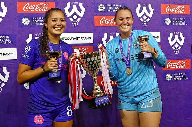 Sisters Chandler and Olivia McDaniel savor the sweetness of clinching the PFF Women’s Cup after helping Stallion Laguna FC beat Kaya FC-Iloilo, 1-0, in the final last Monday at the Rizal Memorial Football Stadium.