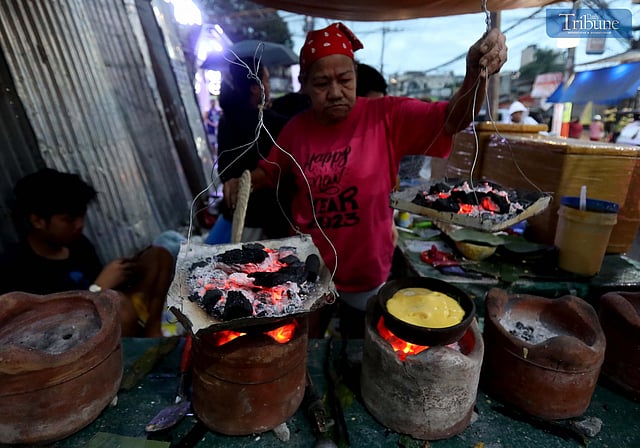 After attending Simbang Gabi at the Epiphany of the Lord Parish in Caloocan North on Monday, 16 December 2024, a vendor is seen preparing bibingka the traditional way — cooked over hot coals. Bibingka remains a beloved Filipino breakfast or merienda, especially during the Christmas season. Analy Labor