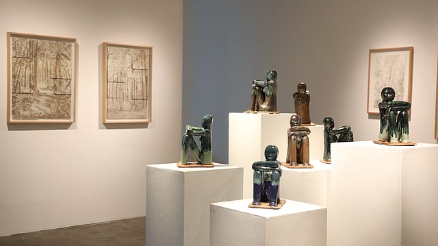 A sight to behold are Paz’s powerful sculptures inspired by the iconic anitu -- the guardians of the gates and watchers of earth. She hand-modeled each sculpture and experimented in creating the ceramic glazes from scratch, using raw materials such as silica, copper carbonate and kaolin. The glazes were layered to create unique drips, volcanic textures and bronze-like saturation. These masterpieces channel angels of the earth.