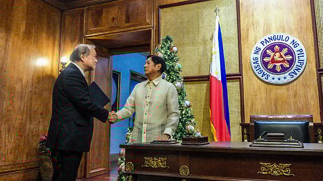 President Ferdinand R. Marcos Jr. welcomes Mr. Akiba Takeo, National Security Adviser of Japan, during a courtesy call on Thursday, 19 December 2024, at the Study Room, Malacañan Palace, Manila.