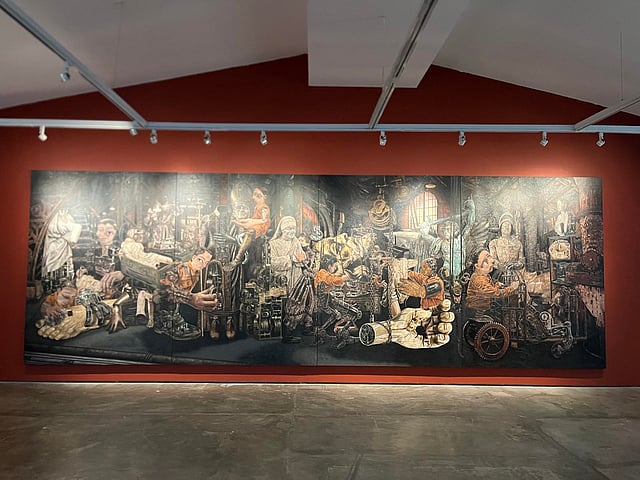 Ryan Jara is a full time Filipino visual artist and painter with a Bachelor’s degree in Fine Arts at the Technological University of the Philippines, Manila. His current exhibition, entitled Tagpi-Tagpi, Dugtong-Dugtong (Do Automatons Dream of Divinity) and curated by Normal Crisologo, is ongoing at Artinformal Gallery, The Alley at Karrivin, Chino Roces Ext., Makati City until 1 February. Beauty Crisologo, Miguel Rodrigue and Norman Crisologo.