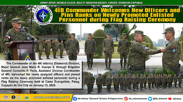 The ceremony was presided over by the Commanding General of the Philippine Army, Lt. Gen. Roy M. Galido, at the 4ID Grandstand, Camp Evangelista, Cagayan de Oro City.