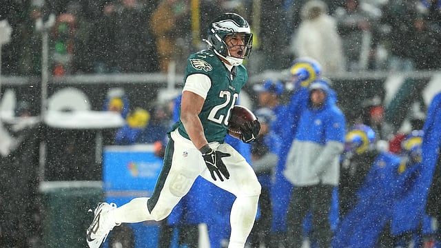 The Eagles’ power in the running game proved decisive in a game played in heavy snow with Barkley, a candidate for the league’s Most Valuable Player, putting up 205 yards on 26 carries.