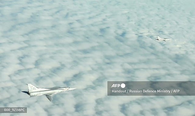 Russia's defense ministry said on Telegram Thursday that two long-range bombers flew over international waters in the Sea of Japan and the Sea of Okhotsk.