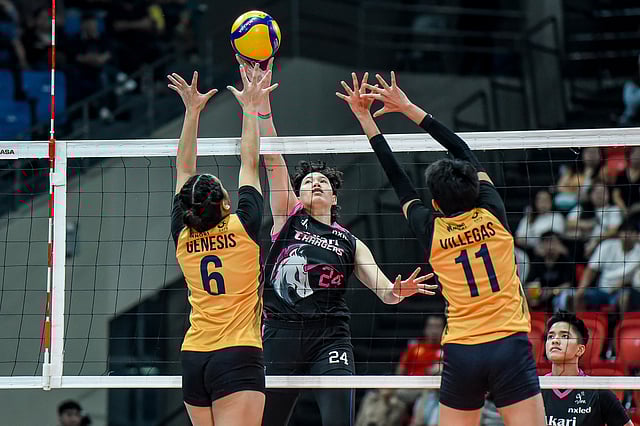 Fifi Sharma scored the last of her six points off a well-timed kill block over former Charger Trisha Genesis to push Akari at match point before Nisperos’ closing hit.
