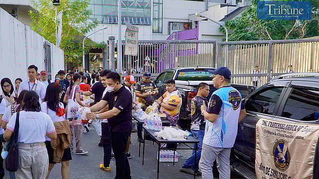 LOOK: Commuters received a free breakfast from generous benefactors earlier this morning, Monday, 3 February 2025, at the Manila Light Rail Transit (LRT) Legarda Station in Sampaloc, Manila.