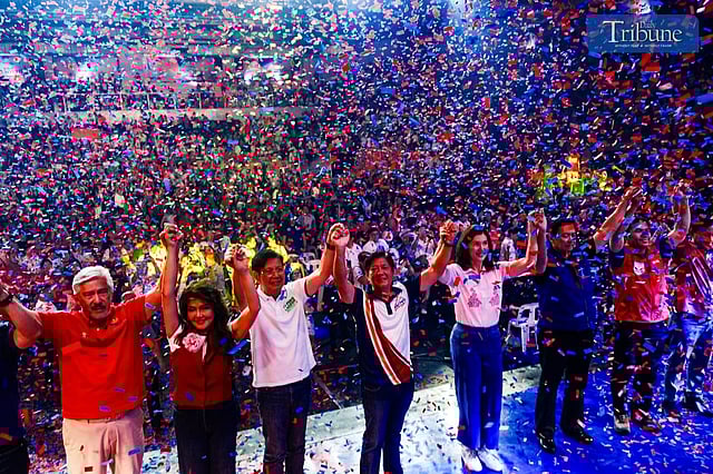 President Ferdinand "Bongbong" Marcos Jr.delivers a speech during the Pasay City sortie for the Alyansa Para sa Bagong Pilipinas. President Marcos emphasized the qualifications and achievements of the alliance’s candidates. He highlighted that their platform is centered on unity, progress, and good governance, without resorting to negativity or fearmongering. Rapper Andrew E. sang some of his hits during the Alyansa Para sa Bagong Pilipinas rally at the Cuneta Astrodome in Pasay.Gunning for another shot at the Senate is former senator and boxing hero Manny Pacquiao.Yummie DingdingYummie DingdingFormer senate president and senatorial hopeful Tito SottoSenate frontrunner Erwin TulfoFormer senator Manny PacquiaoReelectionist Senator Imee MarcosLas Piñas Rep. Camille VillarReelectionist Senator Imee MarcosFormer senator Panfilo "Ping" LacsonSenator Lito Lapid is eyeing his fourth Senate term this coming elections.Makati Mayor Abby BinayFormer interior secretary Benhur AbalosFormer senator Tito SottoRapper Andrew E. The crowd at the Cuneta Astrodome in Pasay City.