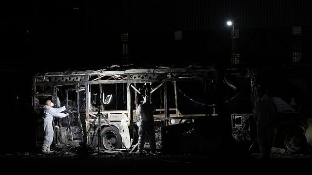Security forces and bomb disposal units were seen by an AFP journalist as they inspected the remains of destroyed buses.
