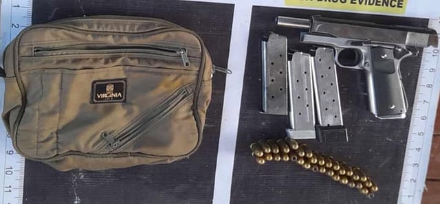 “Upon conducting the search, authorities seized one (1) unit caliber 45 pistol; three (3) magazines assembly; and thirty-three (33) live ammunition for caliber 45 pistol,” the report said.