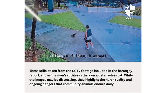 In what should have been a peaceful day at Ayala Triangle Gardens, tragedy struck when a man was caught on CCTV kicking a defenseless community cat, later identified as Ken. The brutal attack, which resulted in Ken’s death, has sparked widespread outrage and calls for justice from animal welfare advocates and the public.