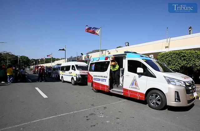 Employees from Quezon City Hall evacuate the buildings as they participate in the first quarter simultaneous earthquake drill on Thursday, 13 March 2025.