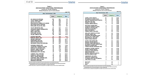 11)former Senator Panfilo Lacson (35.8%, 9th to 13th places).