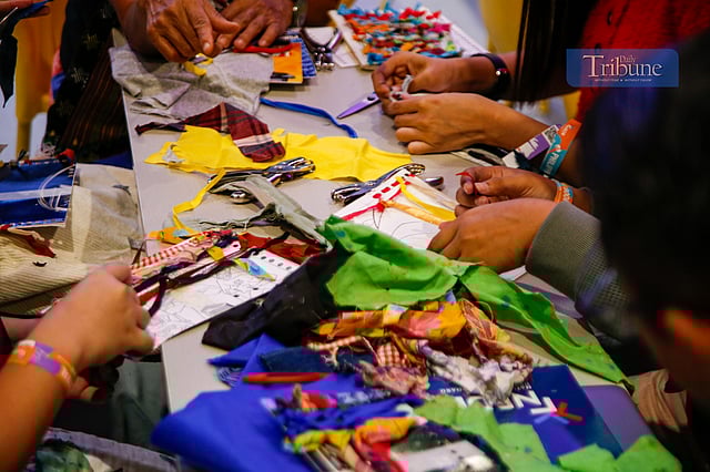 Artists Alma Quinto and Abraham Garcia Jr. facilitate a visual arts poetry workshop at the Creators' stage during the Philippine Book Festival 2025 at SM Megamall, Mandaluyong City, on 15 March 2025. Visual poetry combines visual arts and written expression to create and convey its meaning. Toto Lozano