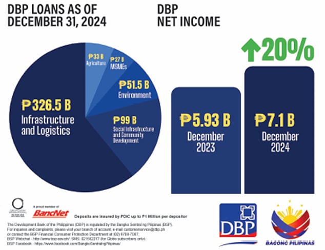 In 2024, DBP's net income jumped to P7.1- billion, which is unprecedented for the past 10 years and representing a 20% increase year-on- year as the Bank ramped up its lending activities to key economic sectors in support of the Marcos, Jr. Administration's socio-economic agenda.