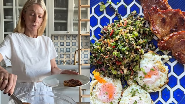 Instead of using store-bought tocino, Paltrow marinated the pork slices herself, aiming to bring out the authentic sweet and savory flavors of the dish. While waiting for the meat to soak in the flavors, she fried sunny-side-up eggs and prepared cauliflower rice — a healthier substitute for the traditional garlic fried rice.