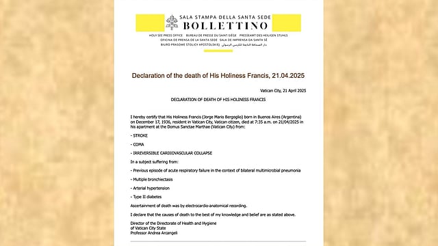Dr. Andrea Arcangeli, Director of the Directorate of Health and Hygiene of the Vatican City State, issued the official certification, and the Holy See Press Office released the report on Monday evening.