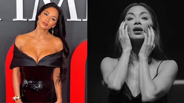 Nicole Scherzinger stunned on the red carpet at the Time100 Gala in New York City, wearing an elegant black gown with an off-the-shoulder velvet and satin top. She paired the outfit with a chunky bracelet, rings, and chandelier-style earrings, her hair styled in loose waves, and makeup kept simple yet flawless.