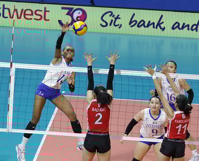 Ateneo needed to dig deep in its bag of tricks to recover from a 16-22 deficit in the fourth set. The Blue Eagles saved three set points before completing the comeback.