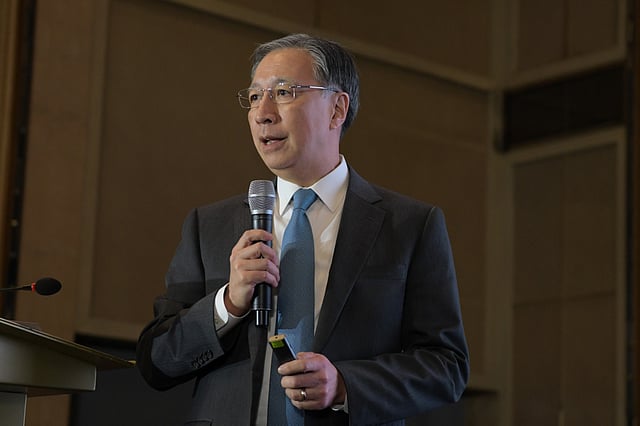 BDO Unibank Inc. president and CEO Nestor V. Tan related the bank’s steps towards climate resilience in the Climate Business Forum: Asia Pacific, co-hosted by the Hong Kong Monetary Authority and the International Finance Corporation. At the event are Tan (right), Mushtaq Kapasi, chief representative for Asia Pacific of International Capital Market Association (center) and Chaoni Huang, head of sustainable capital markets for Asia Pacific of BNP Paribas at the Climate Business Forum in Hong Kong (left).