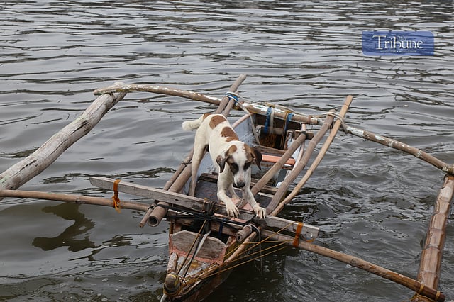 A dog playfully balances itself in a small bangka at the Bulungan Fishport in Parañaque City on Friday, 30 May. The Department of Health reminds pet owners to be responsible and have their pets vaccinated against rabies. Data from last year show that all recorded rabies cases resulted in fatalities.