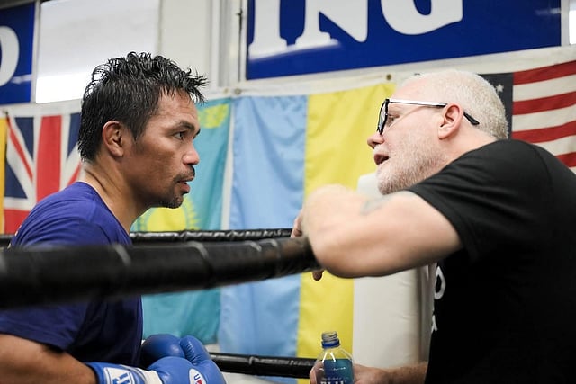 Pacquiao, meanwhile, ramped up his sparring by going up against three different guys at the Wild Card Boxing Club in Hollywood under the watchful eyes of Freddie Roach and the all-Filipino backup training crew.