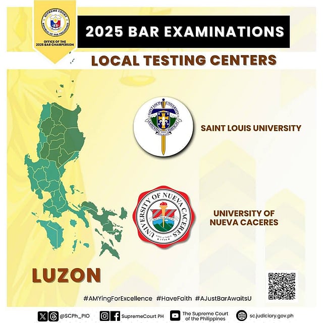The Supreme Court has finalized the list of local testing centers for the 2025 Bar Examinations, confirming 14 sites across the country where aspiring lawyers will take their exams.