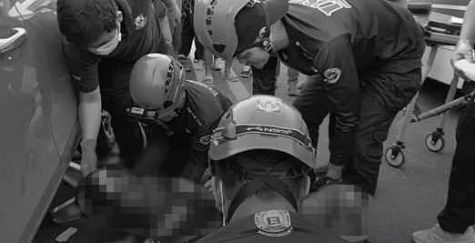 The impact threw the victim to the opposite lane where he was again run over by a Toyota Vios and pinned under the vehicle.