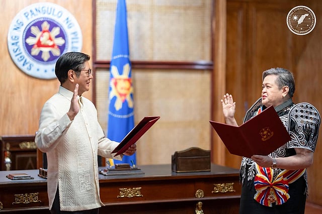 President Ferdinand Marcos Jr. on Tuesday administered the oath of office to Ma. Theresa Lazaro as the new Secretary of Foreign Affairs, officially succeeding Enrique Manalo.