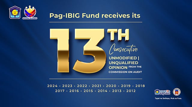 Pag-IBIG Fund has earned unqualified opinions from 2012 to 2017 and unmodified opinions from 2018 to 2024, placing it among a small group of government-owned and controlled corporations (GOCCs) with a decade-long streak of clean audit records.