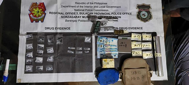 Earlier, in Norzagaray, Bulacan, four suspects were detained after a buy-bust by the Norzagaray Municipal Police Station yielded 48.7 grams of shabu, an unlicensed firearm, and drug paraphernalia.