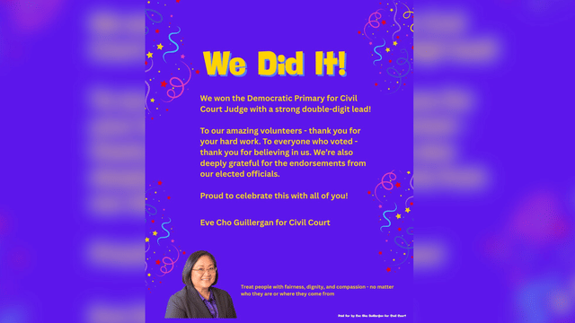 Filipino-Korean American lawyer Eve Cho Guillergan has won the Democratic primary for Civil Court Judge in Queens Municipal Court District 2, making her the first Filipino-American to achieve this in New York City’s judiciary.