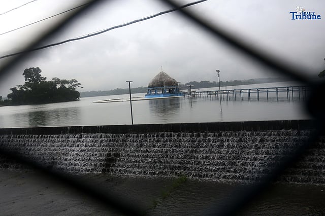 La Mesa Dam in Quezon City water level has reached to 80.16 meters, exceeding its spilling level of 80.15 meters due to continuous rain brought by habagat on Monday July 21 2025. The overflow is impacting low-lying areas along the Tullahan River, including parts of Quezon City, Valenzuela, and Malabon. Residents in these areas are advised to take necessary precautions and monitor water levels. Photo/Analy Labor Photo by Analy Labor for DAILY TRIBUNE
