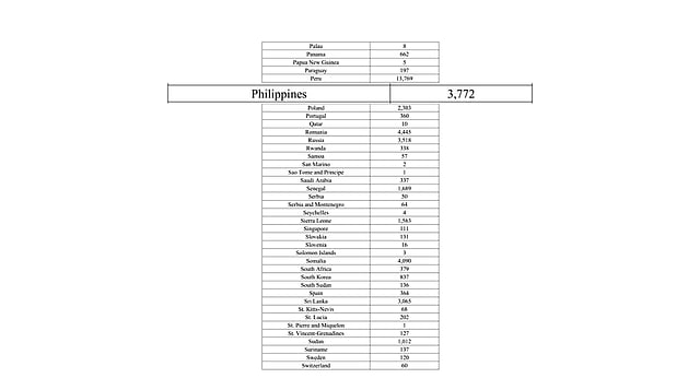 According to the document dated November 2024, there are a total of 3,772 Filipinos classified as “noncitizens” on ICE’s Enforcement and Removal Operations' “non-detained docket with final orders of removal.”