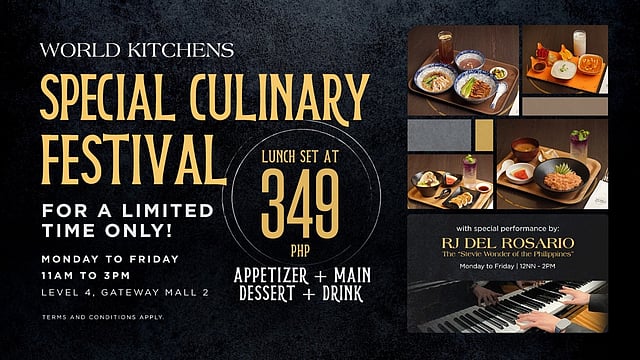 Araneta City's World Kitchens, a premier dining destination featuring curated dishes from around the globe, is offering a limited-time weekday promo: full lunch sets for just P349.