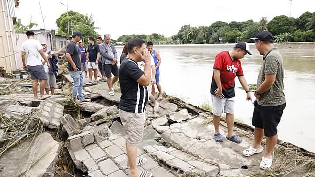 The damaged slope protection has caused flooding in nearby barangays and disrupted traffic flow in the area.