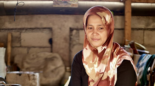 In Lamitan, a panyam seller waits patiently for someone to purchase her delicacies.