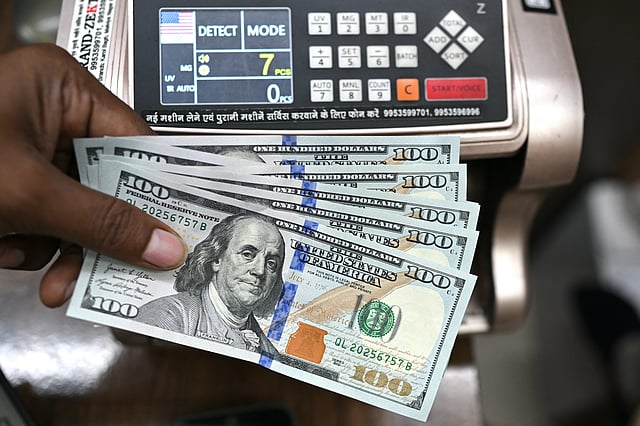The dollar fell sharply against other key currencies while oil prices plunged on fears that a weakening US economy would sap demand.