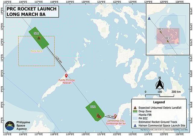 “Surface and aerial assets have been deployed early today to search for debris associated with the loud explosions caused by the Chinese rocket launch from Hainan Island,” Año noted.