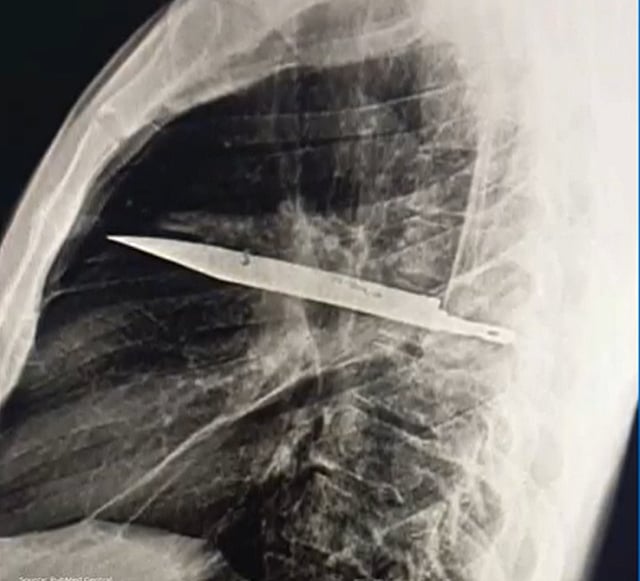 “Doctors noted that the man said he was stabbed multiple times in the face, back, chest and abdomen eight years prior. He received treatment at a health clinic at that time, where his wounds were stitched up. However, a radiological investigation was not conducted due to limited resources in the area."