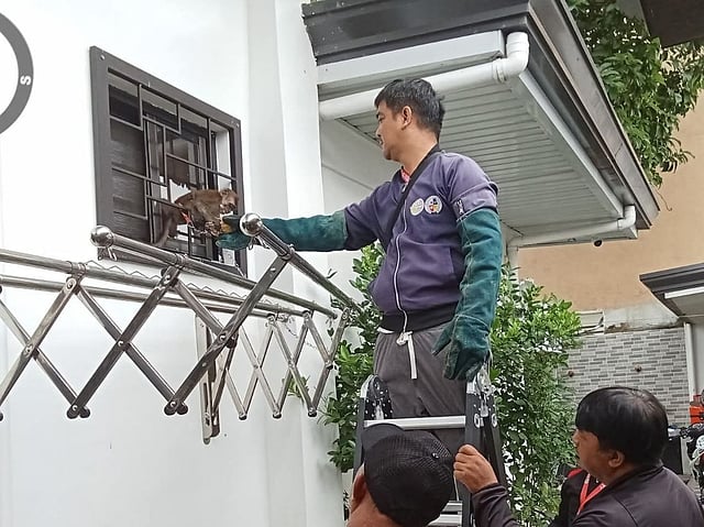 The Angeles CENRO wildlife rescue team responded to a report about the monkey, following concerns raised by resident Jun dela Peña.