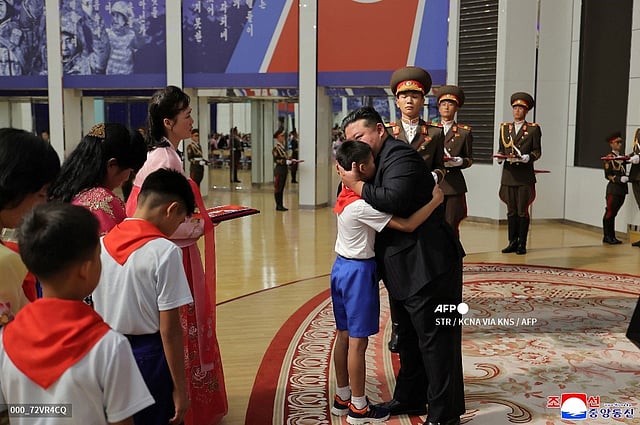 At the ceremony last week, images released by KCNA showed an emotional Kim embracing a returned solider who appeared overwhelmed, burying his face in the leader’s chest.