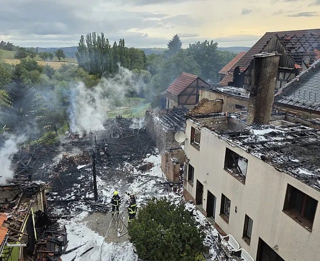 Mayor Tom Zimmermann said lightning is believed to be the cause of the fire, which likely struck a barn as a thunderstorm passed over the area. “The barn was immediately engulfed in flames,” Zimmermann told the German Press Agency.