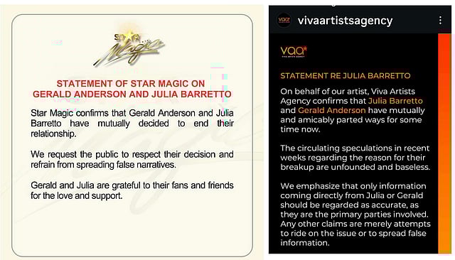 The back-to-back releases from both agencies aim to put an end to weeks of online speculation surrounding the couple’s breakup. Both Gerald and Julia are choosing privacy and respect as they move forward separately.